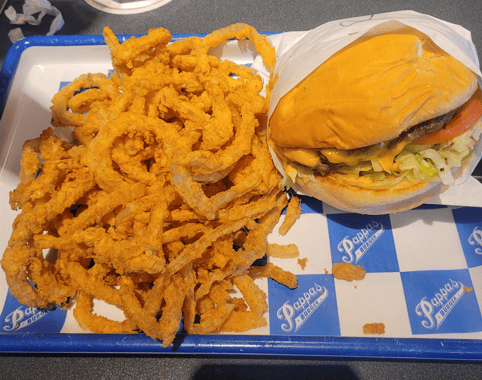 I stopped by Pappas Burger on Westheimer and walked into a clean restaurant with very attentive service right away. I started with the mozzarella bites, which came highly recommended, and they absolutely delivered. The breading was crispy and fried just right, giving a great crunch with every bite.